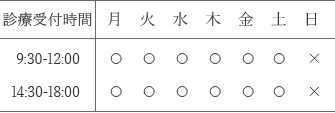 平日・土曜 9:30~12:00/14:30~18:00
